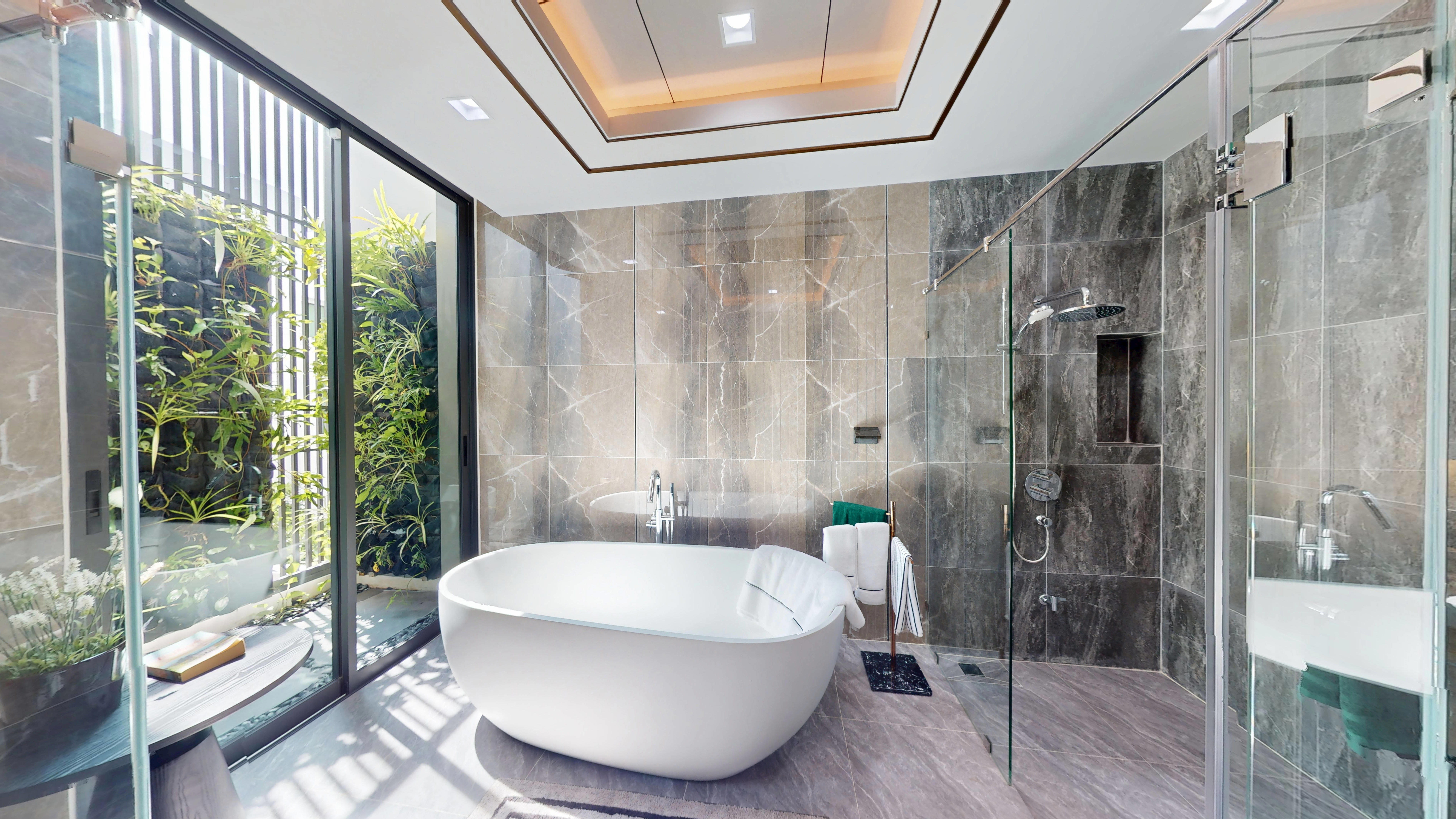 ที่มาพร้อมสระว่ายน้ำส่วนตัวระบบเกลือ ถูกออกแบบให้สามารถเชื่อมต่อพื้นที่กว้าง