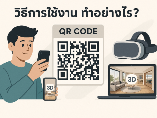 การใช้งาน Virtual 3D Tour ไม่ซับซ้อน แค่ส่งลิงก์หรือสแกน QR Code ลูกค้าก็เข้าไปเดินชมสถานที่เสมือนได้ทันที รองรับทั้งมือถือ คอมพิวเตอร์ และแว่น VR