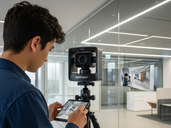 การสร้าง Virtual 3D Tour เริ่มจากการถ่ายภาพสถานที่จริงแบบ 360° ด้วยกล้องเฉพาะ แล้วนำมาประมวลผลในซอฟต์แวร์ เพื่อสร้างเป็นทัวร์เสมือนที่ลูกค้าคลิกเดินชมได้ทันที